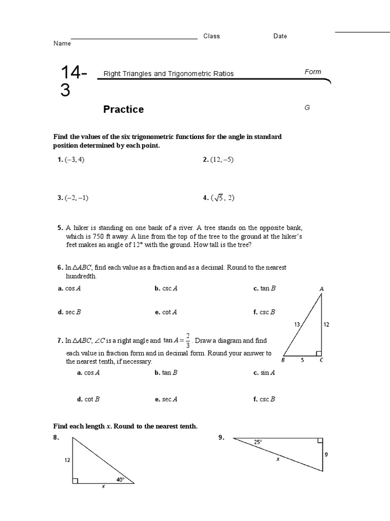 They are special ratios, called trigonometric ratios, that are of interest to us when we deal with right triangles. When students have had time to complete the first side of the handout, i call their attention to the front of the class so that i can demonstrate the answers to the front side. These six trigonometric ratios are abbreviated as sin, cos, tan, csc, sec, cot. In a general triangle (acute or obtuse), you need to use other techniques, including the. What is the value of x?